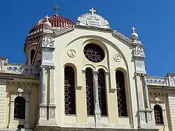 Die Metropolitan-Kirche war zu klein geworden für die stark wachsende orthodoxe Kirchengemeinde, so dass der Bau einer neuen Kathedrale notwendig wurde. Durch Konzessionen an die türkischen Besatzer wurde die Erlaubnis dazu erteilt. Unter dem Metropolit Dionysios Charitoniadis begann man 1862 mit dem Bau nach den Plänen des Architekten Athanasios Moussis aus Epirus. Die Arbeiten wurden aufgrund des Aufstandes von 1866 bis zum Jahre 1883 unterbrochen. Die Kathedrale wurde am 16. April 1895 feierlich von Timotheos Kastrinoyiannis eingeweiht. Die Ausschmückung erfolgte unter der Mitwirkung von Anastasios Orlandos, der 1930 den Entwurf für die Ikonostase erstellte. Die Fresken der Kirche zeigen Themen aus der Bibel und wurden erst 1964 von Stelios Kartakis vollendet.