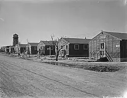 Mit bis zu 7318 Personen, überwiegend aus Oregon, Washington und Alaska, war das Minidoka-Lager nie voll ausgelastet.[8] Viele der Internierten kamen aus der Landwirtschaft, insbesondere in Washington hatten viele Japaner Gemüseanbau betrieben. Sie erweiterten zunächst das vorhandene Bewässerungssystem und bauten danach Gemüse und Kartoffeln für die Eigenversorgung an und hielten Schweine und Hühner. Es gab ein mit Kohle befeuertes Elektrizitäts- und Heizkraftwerk, Friseure, Metzger, Köche und alle anderen für das Leben im Lager nötigen Berufe. Werkstätten fertigten Stühle, Tische und andere Möbelstücke.[9] Eine kleine Textilfabrik sollte ursprünglich für externe Auftraggeber arbeiten, diente aber nur dem Bedarf des Lagers selbst. Einige Internierte arbeiteten außerhalb des Lagers für Farmer. Die arbeitenden Insassen wurden mit 12 bis 19 $ pro Monat entlohnt, weit unter ihrem vorherigen Einkommen.
