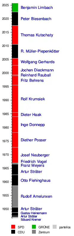 | Artur Sträter | 7. September 1948 | Arnold I | CDU |