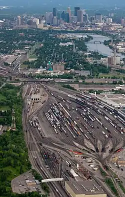 Die Eisenbahn spielte in der frühen Entwicklung Minneapolis’ eine bedeutende Rolle. Große Eisenbahngesellschaften sind oder waren die BNSF Railway, Union Pacific Railroad, Canadian Pacific Railway und die Dakota, Minnesota and Eastern Railroad. Obwohl das Aufkommen nach dem Zweiten Weltkrieg sank und einige Bahnhöfe und Strecken stillgelegt wurden, ist die Eisenbahn gerade für den Güterverkehr bis heute ein wichtiges Transportmittel. So betreibt die BNSF mit dem Northtown Yard einen großen Rangierbahnhof im Norden der Stadt, dessen Ursprünge bis in die 1910er Jahre zurückreichen.