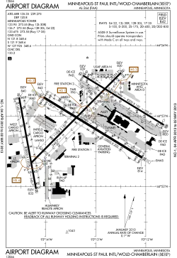 - ↑ a b c AirportIQ 5010: Minneapolis-Saint Paul International/Wold-Chamberlain. GCR1.com, archiviert vom (nicht mehr online verfügbar) am 9. März 2016; abgerufen am 24. Juli 2019 (englisch). Info: Der Archivlink wurde automatisch eingesetzt und noch nicht geprüft. Bitte prüfe Original- und Archivlink gemäß Anleitung und entferne dann diesen Hinweis.