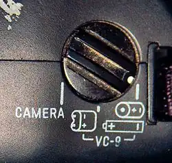 Ein genormter Blitzsynchronanschluss befindet sich an der linken, ein Fernsteuerungsanschluss[Anmerkung 2] an der rechten Gehäuseseite und ein proprietärer Minolta-Zubehör- beziehungsweise Blitzschuh ist auf der Gehäuseoberseite zu finden. Hier können externe Blitzgeräte oder Zubehör wie Blitzkabel,[Anmerkung 2] die drahtlose Fernbedienung IR-1(n) oder der Nahaufnahmediffusor CD-1000 aufgesteckt werden.