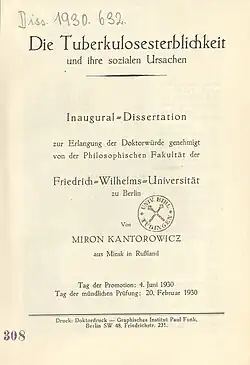 Miron Kantorowicz war ein Sohn des Fabrikbesitzers Kiwa Kantorowicz und der Sara Fein. Er besuchte das Gymnasium und studierte ab 1915 Rechtswissenschaften an der Universität St. Petersburg und ab 1917 an der Universität Moskau. Nach der russischen Oktoberrevolution emigrierte er nach Deutschland, wo er von 1919 bis 1923 Staatswissenschaften, Geschichte und Philosophie und dann von 1923 bis 1926 Medizin an der Berliner Universität studierte. 1930 wurde er bei Ladislaus von Bortkewitsch und Heinrich Herkner an der Philosophischen Fakultät der Universität Berlin promoviert.