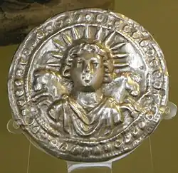 - Als „Sol invictus“ wird Mithras in der Ikonografie mit einem Strahlenschein um den Kopf dargestellt (vgl. Aureole)