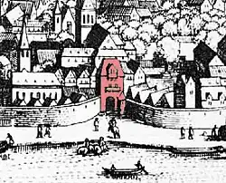 | Martinstor[56] | Mitte 13. Jahrhundert oder früher[32] | 1894 | Dem Martinstor war zeitweise die Wasserpforte vorgelagert;[32] das Martinstor war das letzte Stadttor, das abgerissen wurde.[29] | |
