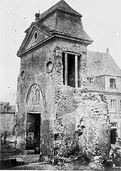 Neutor | vor 1201[45] | 1877 | Renovierung 1748, in Inschrift festgehalten;[46] im 19. Jahrhundert vermutlich noch weitestgehend unveränderter Torbau aus dem 12. Jahrhundert;[47] 1843 Abriss (städtisches Vorhaben) noch durch preußische Regierung abgewendet;[38] 1877 nach gewisser Debatte mit gleichen Positionen wie 1843 abgerissen; Relief (um 1147 datiert[48]) wurde bewahrt.[29] |