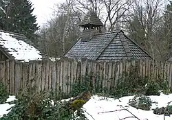 Das Dorf besteht aus sieben Fachwerkhäuschen und einem Holzhaus. Es ist von einem Palisadenzaun umschlossen. Der Zugang erfolgt über eine Zugbrücke und durch das Dorftor. Das Haus des Vogtes wurde in Blockbauweise errichtet, die anderen Häuser sind in Fachwerkbauweise mit Holz und Lehm entstanden.