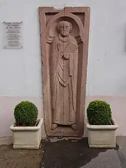 - Grabplatte eines Mönches aus dem 12. Jahrhundert, heute am Weingut Gilg angebracht