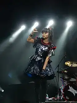 Bis zu Mizunos Austritt im Jahr 2018 bildete Kikuchi mit ihr zusammen die Subgruppe „Black Babymetal“ innerhalb von Babymetal, die im Duett sang, wenn Nakamoto nicht auf der Bühne stand. Kikuchi ist Co-Autorin von Song 4 (4の歌, Yon no uta) auf dem Debütalbum Babymetal; das Lied handelt von dem in Asien weit verbreiteten Aberglauben um die Zahl 4.[3] In seltenen Fällen tritt sie bei Konzerten auch mit E-Gitarre auf – beispielsweise bei den Alternative Press Music Awards 2016, als Babymetal zusammen mit Rob Halford das Lied Breaking the Law von Judas Priest spielte.[4]