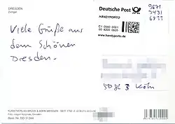 Anschriftenseite einer Ansichtskarte, frankiert mit dem alten Handyporto