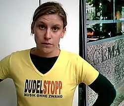 2007 startete die Initiative „Dudelstopp – Musik ohne Zwang“, mit dem das Phänomen unfreiwilligen Musikkonsums im öffentlichen Raum verstärkt ins öffentliche Bewusstsein gerückt werden sollte.[2][3] Die unter anderem auch von DJ Paul van Dyk und Bela B. unterstützten Aktivisten um Katharina Gebhardt kritisierten wegen der Monetarisierung des Musikwesens hierbei auch die GEMA scharf.[4][5]