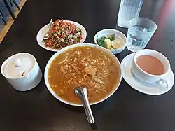 Mohinga ist eine burmesische Fischsuppe mit Nudeln. Sie gilt inoffiziell als „Nationalsuppe“ in Myanmar,[1][2] die häufig morgens auf den Straßen verkauft wird.[3][4] Traditionelle Zutaten sind Wels, Kurkuma, Paprika und Zitronengras.[5] Abhängig von der Landesregion variieren die übrigen Zutaten in Art und Menge.[6] Mondi oder Mohinga genannte Nudeln aus leicht fermentiertem Reismehl bilden die Grundlage für eine traditionelle Mohinga.[7][8]