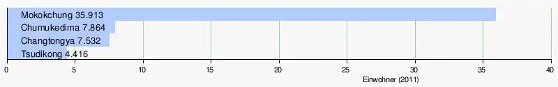Wie überall in Indien wuchs die Einwohnerzahl im Distrikt Mokokchung über Jahrzehnte stark an.[2] Zwischen 2001 und 2011 kam es allerdings zu einer Abnahme von rund 16 Prozent (16,14 %). In diesen zehn Jahren sank die Bevölkerungszahl um über 37.000 Menschen. Die Entwicklung verdeutlicht folgende Tabelle: