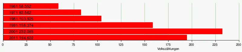 | Volkszählung 1961 | Volkszählung 1971 | Volkszählung 1981 | Volkszählung 1991 | Volkszählung 2001 | Volkszählung 2011 | |||||||||