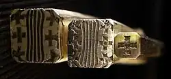 15. Stemplung: 無上道金 (dt. „beste Weg des Metalls“), Bezeichnung des Silberblockpatentes DE 102009010149 A1/U1, Mokume-Block, 2008 des Goldschmiedemeisters Markus Eckardt; ausgezeichnet mit dem Bundespreis für innovatorische Leistungen für das Handwerk 2009.