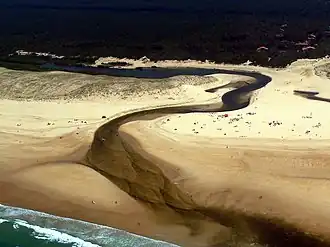 Mündung des Huchet in den Atlantik bei Moliets Plage | ||