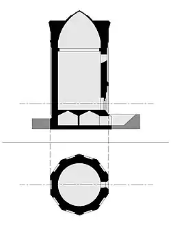 Der Eingang zum Mausoleum befindet sich im Osten. Der obere Gedenkraum und die untere Grabkammer sind unabhängig voneinander von außen zu erreichen. Das Gewölbe der Grabkammer wird von einem Mittelpfeiler gestützt. Der obere Raum ist kreisförmig angelegt und 27,5 Meter hoch. Die Wände sind weitestgehend schmucklos.