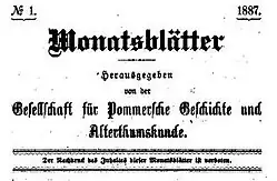 Die Monatsblätter der Gesellschaft für Pommersche Geschichte und Altertumskunde waren eine 1887 von der genannten Gesellschaft neu herausgegebene Zeitschrift. Erster Redakteur war Martin Wehrmann. Verlage waren die Stettiner Firmen F. Hessenland, ab 1896 Herrcke und Lebeling und ab 1915 Léon Saunier. Ende 1942 wurde die Zeitschrift kriegsbedingt eingestellt.