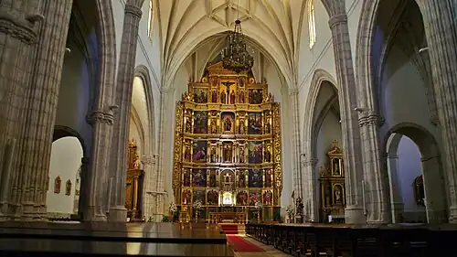 - Mit dem Bau der Iglesia de Santa María Magdalena wurde im Jahr 1516 begonnen; sie zeigt eine Mischung aus spätgotischen und Renaissanceelementen. Die Kirche ist dreischiffig-basilikal und von Sterngewölben bedeckt. Blickfang im Innern der Kirche ist das von Alonso de Covarrubias († 1570) entworfene riesige Altarretabel (retablo), das in der Zeit des spanischen Bürgerkrieges schwer beschädigt, später aber restauriert wurde.[7]