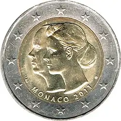 - ↑ Monaco 2011: Gedenkmünze Hochzeit Fürst Alberts II. mit Charlene Wittstock, abgerufen am 1. November 2019