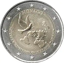 - ↑ Monaco 2013: Gedenkmünze 20 Jahre Mitgliedschaft bei den Vereinten Nationen, abgerufen am 1. November 2019