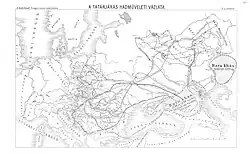 Anschließend war die Eroberung Europas innerhalb der nächsten 18 Jahre[2] geplant; als erster Schritt wurde Ungarn erobert, wozu zwei Armeeabteilungen eingesetzt wurden. Der Einfall der ersten Abteilung in Kleinpolen, Schlesien und Teilen Brandenburgs im Sommer 1241 rief wie geplant ein deutsch-polnisches Heer auf den Plan, das in der (ersten) Schlacht bei Liegnitz vernichtend geschlagen wurde. Damit wurde eine mögliche Flankenbedrohung aus Ländern ausgeschaltet, deren Herrscher mit dem ungarischen König verwandt waren. Diese Abteilung zog dann über Mähren und Niederösterreich nach Ungarn, wo bereits einen Tag nach der Schlacht bei Liegnitz das Aufgebot des ungarischen Königs Béla IV. in der Schlacht bei Muhi durch das mongolische Hauptheer besiegt worden war. Ganz Ungarn wurde besetzt, mongolische Vorausabteilungen erreichten die kroatische Adria und Thrakien.