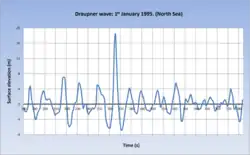- In der Neujahrsnacht 1995 meldete die automatische Wellenmessanlage der norwegischen Ölbohrplattform Draupner-E in der Nordsee in einem Sturm mit 12 m hohen Wellen eine einzelne Welle mit 18,5 m Höhe. Damit war bewiesen, dass es Monsterwellen gibt, und in den folgenden Jahren wurden Berichte und Forschungen ausgewertet.