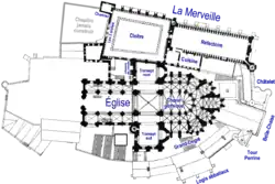 Die Baugeschichte der Abtei und die zeitliche und räumliche Zuordnung der Bauteile ist äußerst komplex (Claude Quétel spricht von einem „verschachtelten Baukonglomerat“).