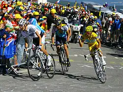 Im Jahr 1994 fand eine weitere Überquerung des Mont Ventoux statt. Zwischen Montpellier und Carpentras wurde erneut die Auffahrt von Bédoin befahren, wobei der Ausreißer Eros Poli über den Gipfel führte und die Etappe als Solist gewann. Dahinter griff sein Landsmann Marco Pantani an, der sich kurzzeitig von dem gesamtführenden Miguel Indurain absetzen konnte, ehe er nach der anschließenden Abfahrt von der Gruppe um das Gelbe Trikot gestellt wurde. Miguel Indurain behielt die Gesamtführung und feierte wenige Tage später seinen vierten von fünf Tour-de-France-Siegen.[28] Im Jahr 2000 war es Marco Pantani, der die Bergankunft auf dem Mont Ventoux gewann, wobei ihm der gesamtführende Lance Armstrong den Sieg überließ. Später meinte der US-Amerikaner, dass es ein Fehler gewesen war den Etappensieg herzuschenken.[29] Zwei Jahre später siegte der Franzose Richard Virenque auf dem Mont Ventoux, nachdem er sich mit der frühen Ausreißergruppe abgesetzt hatte. Lance Armstrong holte im Schlussanstieg mehr als fünf Minuten auf, musste sich jedoch mit dem dritten Etappenrang begnügen.[30] Eine dritte Möglichkeit die Bergankunft auf dem Mont Ventoux zu gewinnen erhielt Lance Armstrong im Jahr 2009, nachdem er mit 37 Jahren sein Comeback als Radprofi gab. Im Lauf des Rennens kam es jedoch zu einer Rivalität zwischen ihm und seinem jüngeren Teamkollegen Alberto Contador, der das Gelbe Trikot auf der 15. Etappe übernahm. Die Bergankunft auf den Mont Ventoux fand in jenem Jahr am vorletzten Etappentag statt und entschied somit über den Gesamtsieg der Rundfahrt. Der Etappensieg wurde in der Ausreißergruppe entschieden, wobei sich der Spanier Juan Manuel Gárate knapp vor dem Deutschen Tony Martin durchsetzte. Lance Armstrong erreichte das Ziel am Hinterrad von Alberto Contador und Andy Schleck, hinter denen er schlussendlich den dritten Gesamtrang belegte.