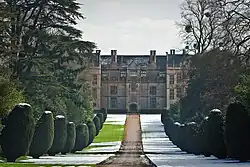 Der ehemalige Eingangshof bildet heute den östlichen Garten. Aus elisabethanischer Zeit sind die Umfassungsmauern, von Obelisken gekrönte Balustraden und zwei Pavillons erhalten. Der Garten öffnet sich zur Lindenallee, die die ursprüngliche Zufahrt zu dem Herrenhaus bildete. Der nördliche Parterregarten wurde spätestens um 1760 angelegt, seine heutige Form erhielt er um 1850. Er besteht aus quadratischen Beeten um einen zentralen Brunnen und wird von kegelförmigen Eiben und lederblättrigem Weißdorn gerahmt. Die Orangerie wurde 1848 errichtet. Auf dem südlich des Hauses gelegenen, Cedar Lawn genannten Rasenstück stehen zwei Arizona-Zypressen, die als die größten in England gelten,[5] sowie eine Edelkastanie. Das Rasenstück wird von alten, wellenförmig geschnittenen Eibenhecken umschlossen, die ihre ungewöhnliche Form nach schweren Schneeschäden im Winter 1947 erhielten. Die Hauptzufahrt von Westen wurde um 1785 angelegt und ist von 96 Eiben gesäumt.