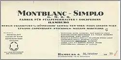 Letztendlich handelt es sich dabei aber eben nicht um einen Stern, sondern um den stilisierten Gipfel des Berges Mont Blanc mit seinen sechs Tälern. In dieser Zeit wurden bereits Handelsvertretungen im europäischen Ausland z. B. in London und Paris gegründet. 1914 wurde die Simplo-Filler-Pen & Co. In: Simplo Füllfedergesellschaft umbenannt. 1919 eröffnete das erste Montblanc-Geschäft in Hamburg, das ausschließlich Montblanc-Produkte anbot. Weitere wurden in den nächsten Jahren in Berlin, Köln, Breslau und weiteren Städten eröffnet.
