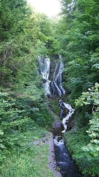 ![]() Unterer Bereich des Montjola-Wasserfalls vom Kraftwerk Schwarzbach aus gesehen | ||