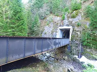 Westportal des Jamantunnels bei der Haltestelle Jor, Brücke über die Baye de Montreux