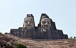 Das Monument der Kaiser Yan und Huang am Rand der chinesischen Provinzhauptstadt Zhengzhou hat eine Höhe von etwa 106 Metern und gehört damit zu den größten Skulpturen überhaupt. Es überragt beispielsweise die New Yorker Freiheitsstatue um rund 13 Meter. Die Doppelbüste zeigt die Köpfe von Yandi und Huangdi, zwei der frühesten Kaiser Chinas. Die Köpfe selbst sind nur grob in den Fels gehauen, die Gesichter feiner herausgearbeitet. Nach etwa 20 Jahren Bauzeit wurde das Monument 2007 fertiggestellt.[1][2]