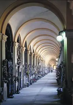 Der Friedhof wurde am 1. Januar 1851 offiziell eröffnet, obwohl er bei weitem noch nicht fertiggestellt war. Der Entwurf stammte von dem Genueser Stadtbaumeister Carlo Barabino (1768–1835) und sah eine Stadt der Toten vor, die dem Anspruch Genuas als kommerzielles und kulturelles Herz Liguriens sowie auch dem hygienischen Standard der Zeit gerecht werden sollte. Barabinos Mitarbeiter Giovanni Battista Resasco (1798–1871) setzte ab 1844 den Plan des Meisters im Gebiet um Villa Vaccarezza um: Ein rechteckiger Zentralbau umlaufender Bogengänge, und vom Haupteingang blickt man auf das über dem Areal thronende Pantheon, das über eine monumentale Treppenanlage zugänglich ist. Die Lage inmitten einer grünen Hügellandschaft gestattete auch die Anlage terrassenförmiger Gräberfelder. Eine von Resasco vorgeschlagene Erweiterung halbkreisförmiger Galerien im Nordosten wurde 1890 verwirklicht, und bis 1955 wurden mit Unterbrechung zusätzliche Bogengänge errichtet sowie darüber hinaus auch ein evangelischer und englischer Friedhof integriert.