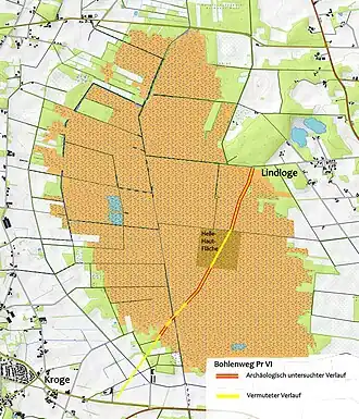 7. Rote Mappe 2017, Bedeutende Bodendenkmale lösen sich buchstäblich in Luft auf: Der Bohlenweg „Pr VI“ und andere prähistorische Moorwege sind durch Austrocknung von der endgültigen Zerstörung bedroht! (Memento vom 15. August 2017 im Internet Archive; PDF), S. 31–32.