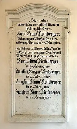Anna Reitsberger, Bäuerin auf dem Neuhauser-Hof in Salmdorf bei München, jetzt Gemeinde Haar, und ihre drei Töchter Kreszenz, Anna und Marie wurden am Abend des 12. März 1893 auf ihrem Bauernhof ermordet. Anschließend wurde der Hof angezündet. Der oder die Täter wurden nie ermittelt.[1]