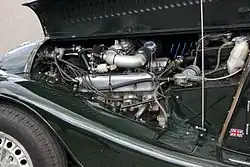 Der Motor der Baujahre 1968 bis 1972 ist ein wassergekühlter Achtzylinder-Viertakt-V-Motor P6B von Rover mit zentraler, über Kette angetriebener Nockenwelle und zwei SU-Fallstromvergasern HS 6; Hubraum 3532 cm³, Leistung 160 PS (118 kW) bei 5200/min, maximales Drehmoment 29 mkp (284 Nm) bei 2200/min.[9] Wegen verschärfter Abgasbestimmungen fiel die Leistung für die folgenden Jahre auf 143 PS (105 kW), wurde aber ab 1976 wieder angehoben und stieg 1983 durch Einführung der Benzineinspritzung statt Vergaser auf 140 kW (190 PS). 1990 wurde der Hubraum auf 3,9 Liter vergrößert, ohne die Leistung zu steigern, und seit 1997 war es kurzzeitig wahlweise ein 4,6-Liter-Motor mit 162 kW (220 PS). Wegen des Aluminium-Motorblocks ist er sehr leicht.