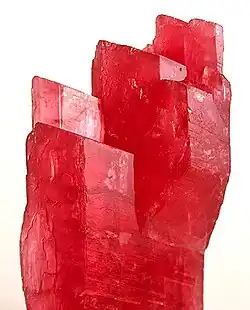 In jüngerer Zeit wurde das Bergwerk bekannt durch Funde von Rhodonit, einem hochwertigen, kirschroten Halbedelstein. Das rechts gezeigte Rhodonit-Stück besteht aus mehreren miteinander verwachsenen Kristallen mit scharfer geometrischer Form. Es ist auf allen Vorder- und Seitenflächen makellos, hat einen leichten Kontakt auf der Rückseite und liegt flach auf einem Sockelabschluss, der leicht kontaktiert und nicht gebrochen ist. Ein Fundstück in dieser Farbe und Form wäre Zehntausende von Dollar wert, wenn es aus alten Funden in Broken Hills stammen würde. Heute gibt es Rhodonit in dieser Qualität zu vergleichsweise erschwinglichen Preisen aus einem neueren Fund.