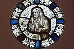 Die Darstellung des Moses ist ein Fragment eines Bleiglasfensters, das von einem unbekannten Künstler im 15. Jahrhundert geschaffen wurde. Die Scheibe kam 1932 in das Museum Schnütgen in Köln und hat die Inventar-Nr. M 168.