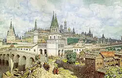 In den beiden letzten Jahrzehnten des 15. Jahrhunderts begann der Ausbau des Kreml, in dessen Umkreis sich nun in großer Zahl Handwerker und Kaufleute niederließen. Die Einwohnerzahl stieg bald darauf auf mehr als 100.000, so dass um 1600 eine Ringmauer um Moskau und eine Erdverschanzung hinzukamen, die die blühende Stadt fortan nach außen abschirmten. 1571 war sie ein letztes Mal von den Tataren heimgesucht worden, als die überwiegend aus Holz gebaute Stadt abbrannte. Bereits ein Jahr später war die Tatarengefahr in der Schlacht von Molodi südlich von Moskau aber endgültig gebannt.