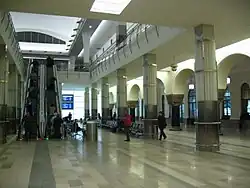 Im Inneren des Empfangsgebäudes wurden im Zuge des Umbaus 1902 bis 1904 die Wände des Hauptwartesaals mit zwölf Wandmalereien des Künstlers Konstantin Korowin geschmückt, welcher ebenfalls in Abramzewo tätig gewesen war. Auf diesen Malereien, die von Korowin 1896 erschaffen wurden und ursprünglich im gleichen Jahr als Dekoration des nordrussischen Themenpavillons auf der Nischni Nowgoroder Messe gedient hatten, waren Landschaften und Alltagsszenen des russischen Nordens dargestellt. Bei der Renovierung in den 1960er-Jahren wurden die Malereien entfernt und in die Moskauer Tretjakow-Galerie überführt, wo sie bis heute im Original zu sehen sind. Eine Sehenswürdigkeit der Innenräume stellen bis heute die oben bereits erwähnten ehemaligen Stützsäulen aus schwarzem Granit dar, die 1900 von Lew Kekuschew für den später verschobenen Bahnsteig errichtet wurden.