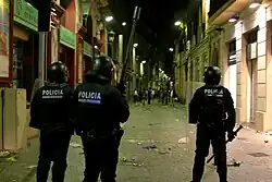 - ↑ El Publico: El jefe de los Mossos cae por las cargas contra los estudiantes vom 25. März 2009 (deutsch: Chef der Mossos entlassen wegen des Vorgehens gegen Studenten)
