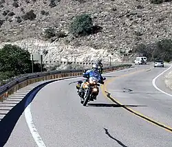 Populär sind Motorradreisen durch Indien mit einer Royal Enfield Bullet.[32] Beliebte Strecken in Amerika sind in Nord-Süd-Richtung die Panamericana,[33] sowie quer durch die USA von Florida nach Kalifornien oder auf der Route 66 von Chicago nach Los Angeles mit einer Harley-Davidson. Nördlich der US-amerikanischen Grenze lässt sich Nordamerika auch auf dem Trans-Canada Highway queren. Südamerika kann in Nord-Süd-Richtung auf der Ruta Nacional 40[34] durch Argentinien oder auf der Ruta 5 durch Chile bereist werden.