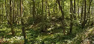 ![]() Graben und Burghügel im Tal des Bruckhauser Mühlenbachs | |