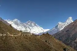 Am Thokla-Pass befinden sich zahlreiche Gedenksteine für die am Mt. Everest tödlich verunglückten Bergsteiger. Kurz darauf trifft der Weg von Gokyo und dem Cho La Pass auf den jetzt entlang des Khumbu-Gletschers verlaufenden Everest-Trek. Dementsprechend ist der folgende Ort Lobuche zumeist überfüllt, die Unterkünfte dort sind in einem besonders schlechten Zustand. Kurz hinter Lobuche kann in einem Seitental zum Lobuche (Berg) hin das Italian Research Center[1] besichtigt werden, die Forschungsstation widmet sich unter anderem der Beobachtung des Klimawandels (mit Messungen vor allem am direkt vor der Station liegenden Lobuche-Gletscher) sowie der Erforschung der Höhenkrankheit. Von Lobuche ist Gorak Shep (5140 m), die letzte Ortschaft vor dem Mount Everest, innerhalb eines Tages leicht zu erreichen (gute Höhenanpassung vorausgesetzt). In der Regel besuchen Trekker von hier aus den Kala Patthar, von dem eine gute Sicht auf das obere Drittel des Mount Everest möglich ist. Vom Everest Base Camp ist der Mount Everest überhaupt nicht, von Gorak Shep nur dessen Spitze zu sehen.