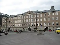 - ↑ Zur Geschichte des Gebäudes siehe Café Glockenspiel. In: Salzburger Nachrichten: Salzburgwiki. Abgerufen am 28. November 2023.