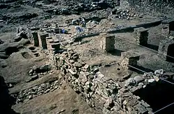 Ab 1967 änderten die Forscher die Fragestellung der Grabungen und konzentrierten sich mehr auf die Wohnstätten und deren Beziehung zu den öffentlichen Bauten. Im Osten des Hügels entdeckte Hauschild im gleichen Jahr durch Suchschnitte Teile des ersten Hauses („Haus 1“) und Teile eines südlichen Nebengebäudes („Haus 6“), das von 1982 bis 1989 ausgegraben wurde.[11] 1974 wurde bei einer Untersuchung des südlichen Forums ein weiteres Haus angeschnittenen („Haus 2“), das in den Jahren 1988, 1993 und 1996 vollständig ergraben wurde.[12] 1977 bis 1983 wurde zudem in mehreren Schnitten die an der Stadtmauer gelegene Südnekropole untersucht. 1984 übernahm Hauschild die Leitung der Grabungen,[9] in den Jahren 2002, 2003 und 2005 wurde das Gebiet geophysikalisch untersucht.[13]