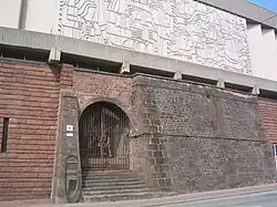 Seit dem Bau des Museums im Jahr 1977 führt die Kolonnade des ehemaligen Bischofspalastes, der 1782 vom Architekten Jean-Michel Carbonnar an der Nordseite der Kathedrale errichtet wurde, in den neuen Raum. Der mittelalterliche Teil befindet sich auf der Seite der Rue Saint-Charles, rechts neben dem Haupteingang. Dort befindet sich eine überdachte Treppe, der letzte Überrest der Mauern, die einst der Befestigung des Geländes des auf dem Berg errichteten Kirchenviertels dienten und die insbesondere den Zugang zu einem inzwischen umgeleiteten Arm der Meurthe ermöglichten. Die Mauer wurde 1781 beim Bau des Bischofspalastes durchbrochen.