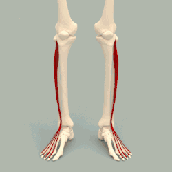 Bei den vierfüßigen Säugetieren streckt der Muskel die Zehengelenke und beugt das Sprunggelenk.